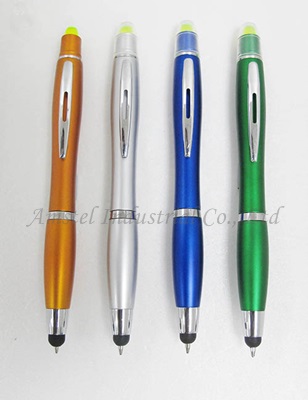 品質優良:塑料製造的造型螢光筆+觸控+原子筆