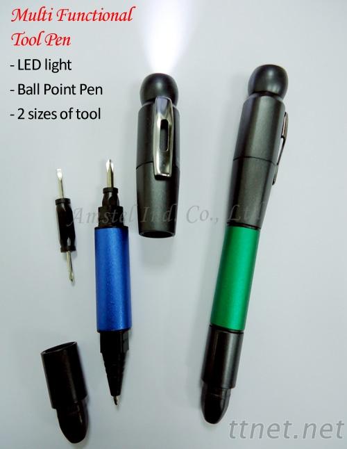 結合原子筆. 工具(2款螺絲工具起子), Led燈光...等多功能用筆, 可於筆身印刷. 雷雕客制Logo