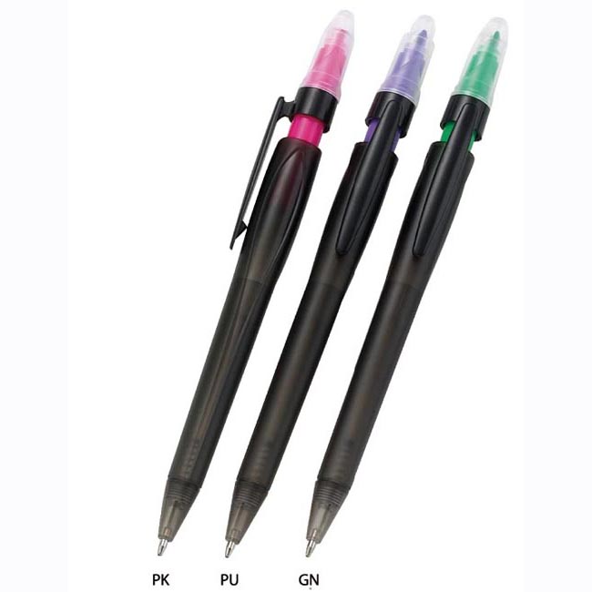 跳動式,造型多功能筆:螢光+原子筆, 可於本體上方印刷客製Logo