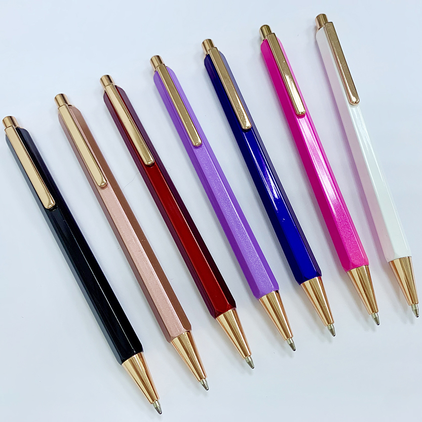 金屬材質跳動型六角邊原子筆,可於筆身進行印刷或雷雕客製logo,